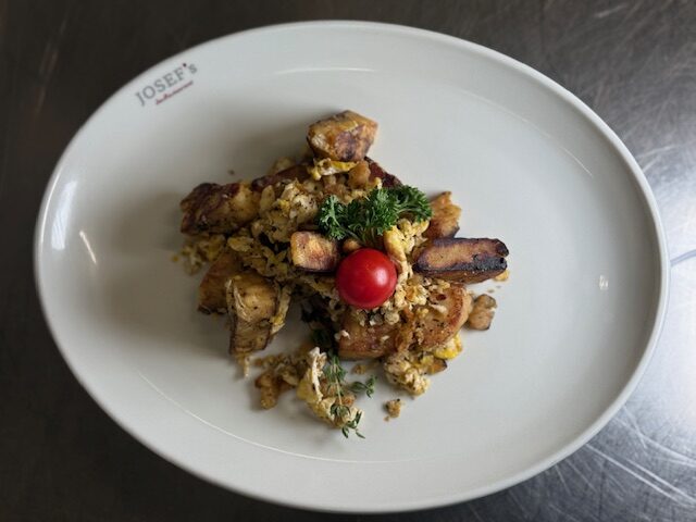An Austrian classic with a modern touch: fluffy bread dumplings grilled to a golden crust and paired with a creamy egg base. This hearty combination balances a soft, moist center with a crispy outside – ideal as a filling side dish or a light meal.